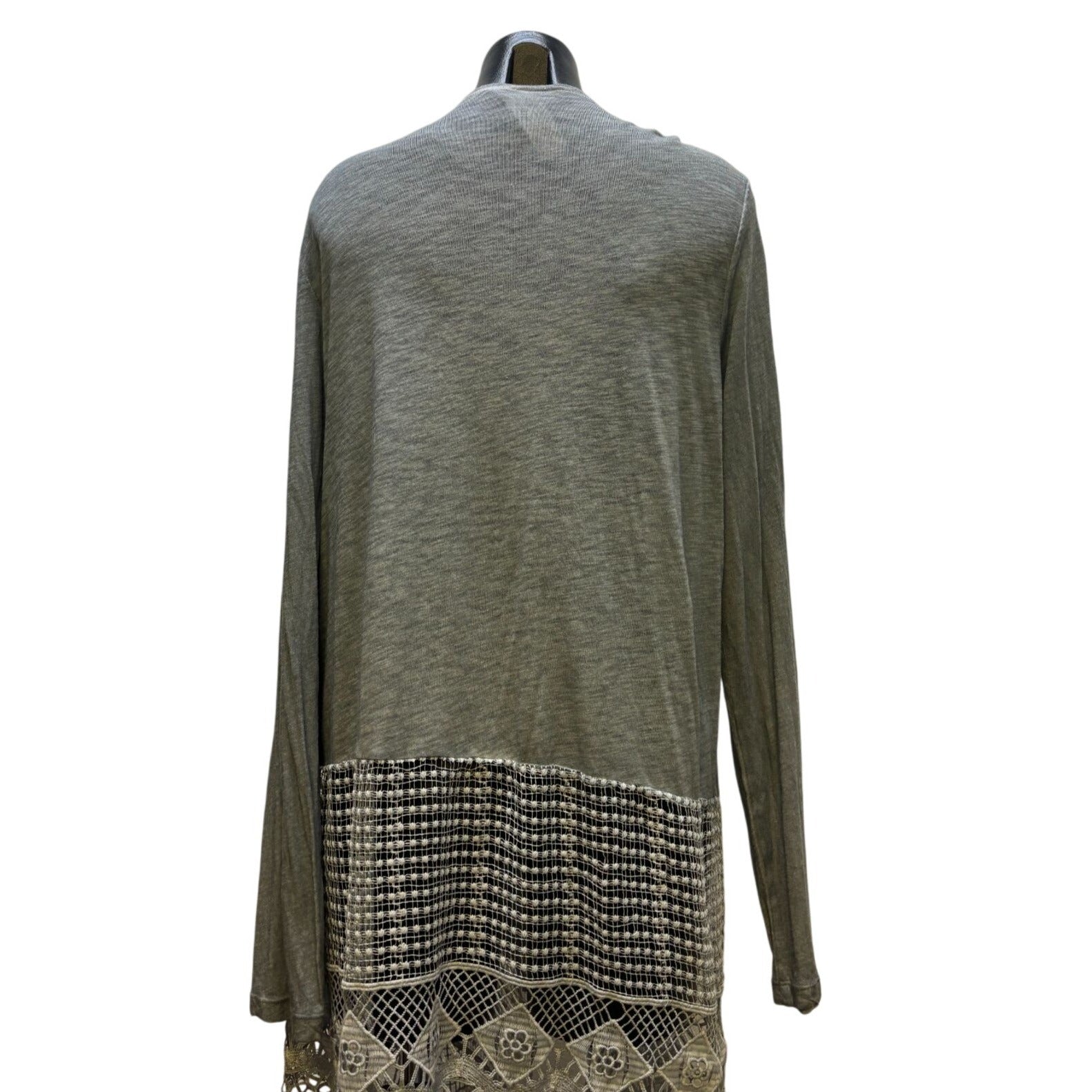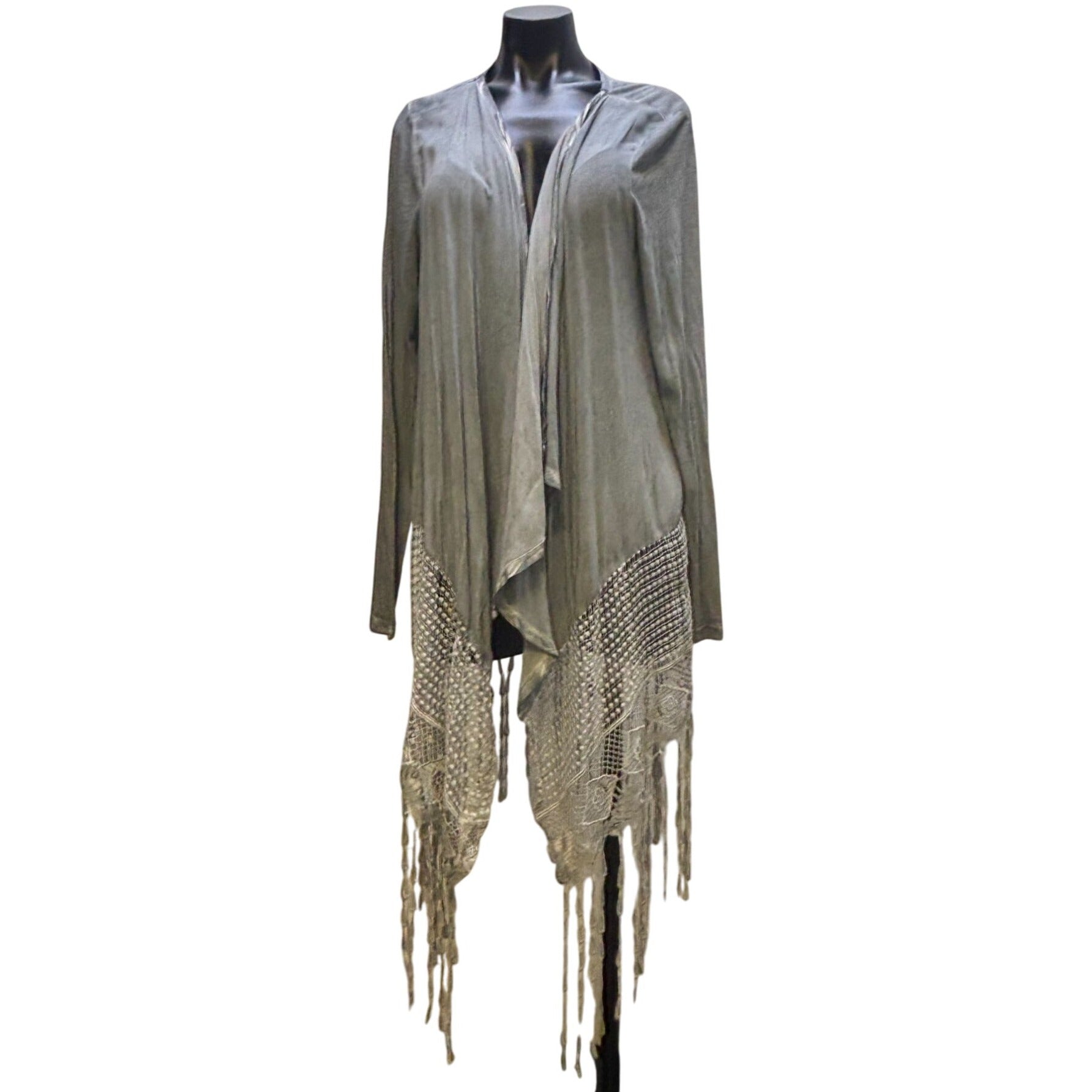 XCVI Gray Fringed Lace Cardigan XL