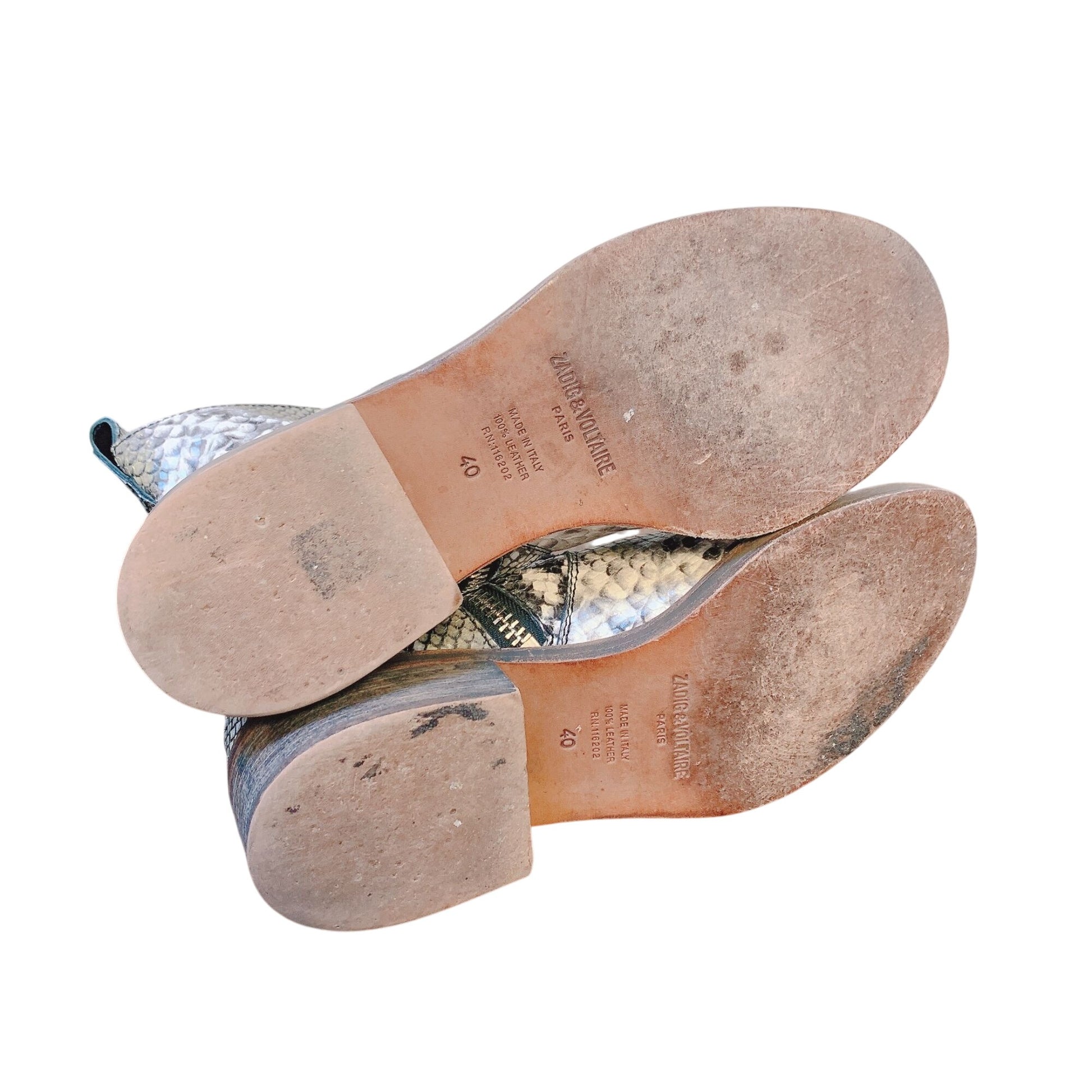Zadig & Voltaire Studded Snakeskin Leather Ankle Boots Side Zipper 40/9.5